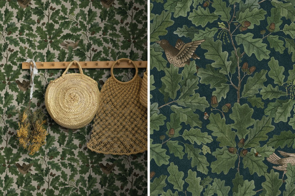 Dette vakre tapetet er prydet av det varme grønne løvet til den mektige eiken sammen med de flotte eikenøttene sine. Ser du nøye etter vil du også oppdage rundt 20 insekter i mønsterbildet. Visste du at ett enkelt eiketre kan huse 1000 forskjellige dyrearter? Med dette tapetet på veggen fylles hele rommet ditt av skogens fred og vitalitet. Dette mønsteret er malt i akvarell før det trykkes! Grønt er fint, og dette tapetet gjør seg godt både på soverommet og i gangen - eller hvorfor ikke på barnerommet?