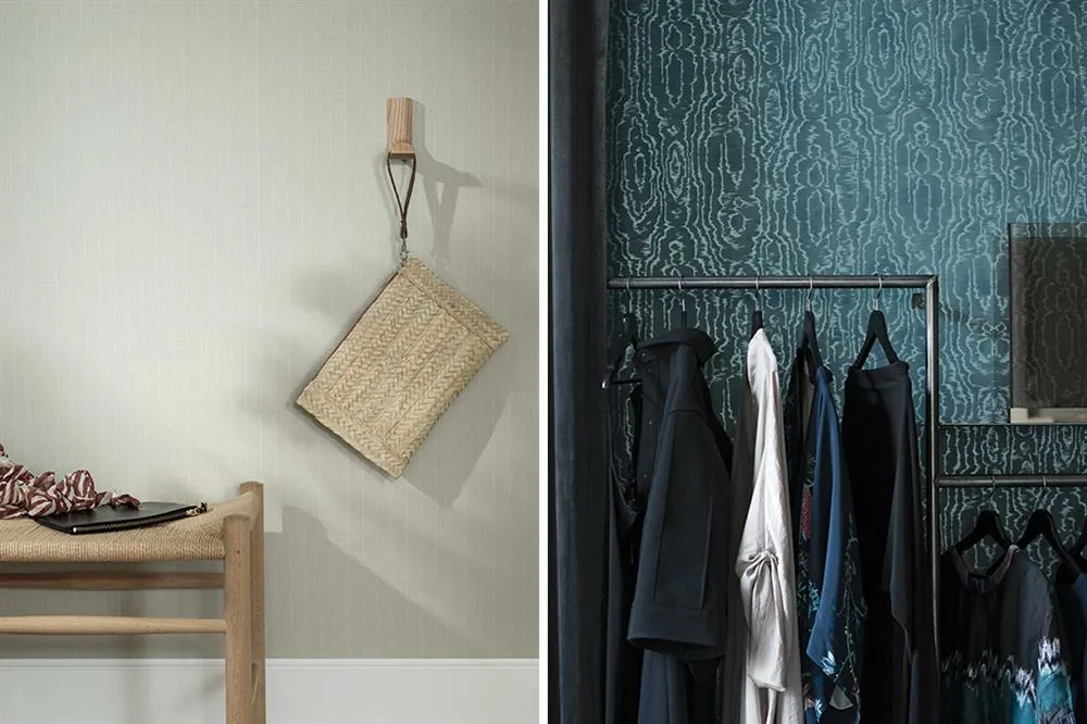 Hvordan ser oppbevaringen din ut i gangen? Har du lukkede garderobeskap og skuffer, eller liker du å ha mye klær hengende foran skapene? Hvis du er interessert i mote og vil at det skal vises, kan du tenke på hvordan tapetet kommer til å matche klærne dine.